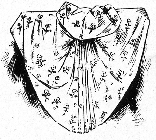 HANDKERCHIEF DISPLAY. CAGE CONTAINS STUFFED BIRDS. THE BARS ARE OF WHITE BABY RIBBON.—Boyer.