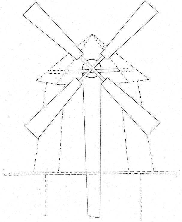 HANDKERCHIEF DISPLAY. SCENIC BACKGROUND. WINDMILL AND HOUSE OF LIGHT WOOD COVERED WITH CLOTH, TO WHICH HANDKERCHIEFS ARE PINNED.—Van Derschmidt.