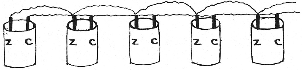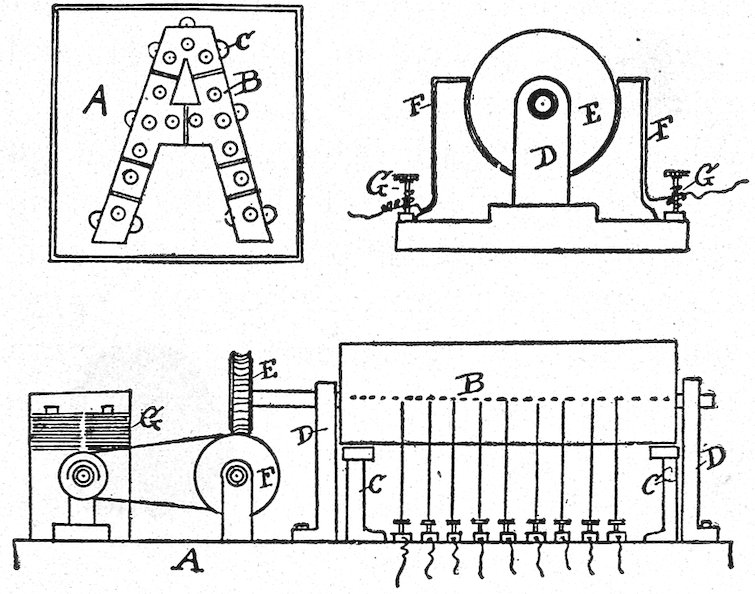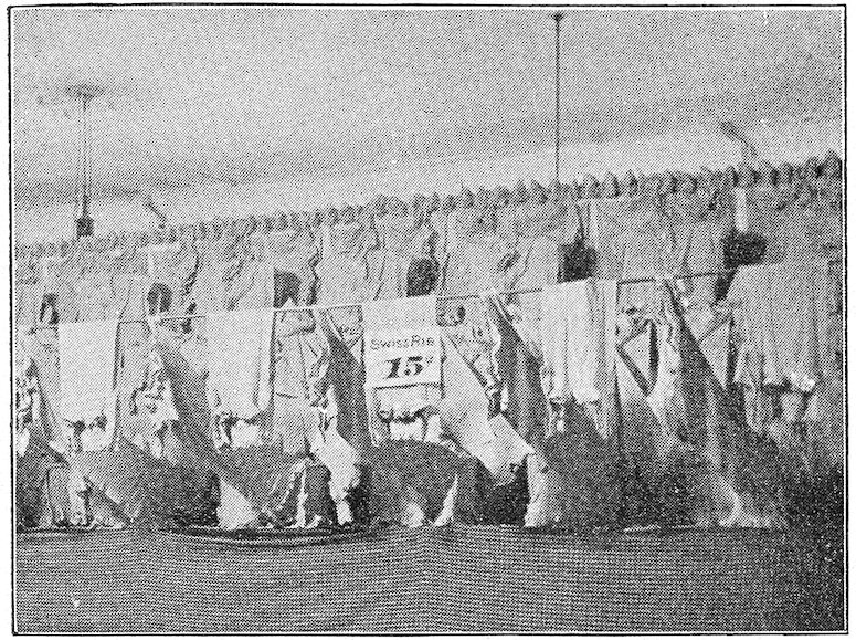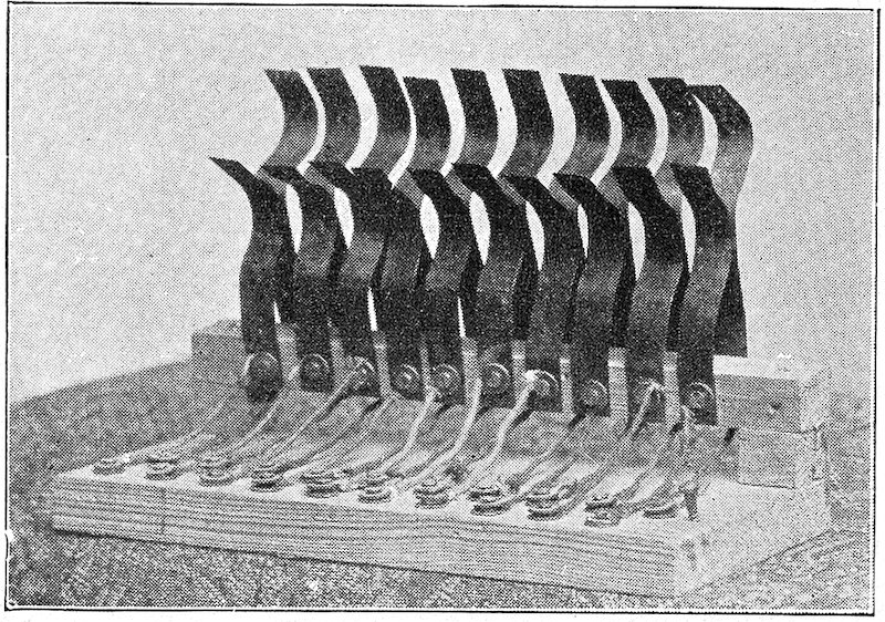 RIBBON DISPLAY. BOLTS ARE STRUNG ON HEAVY CORDS.—Langhanke.
