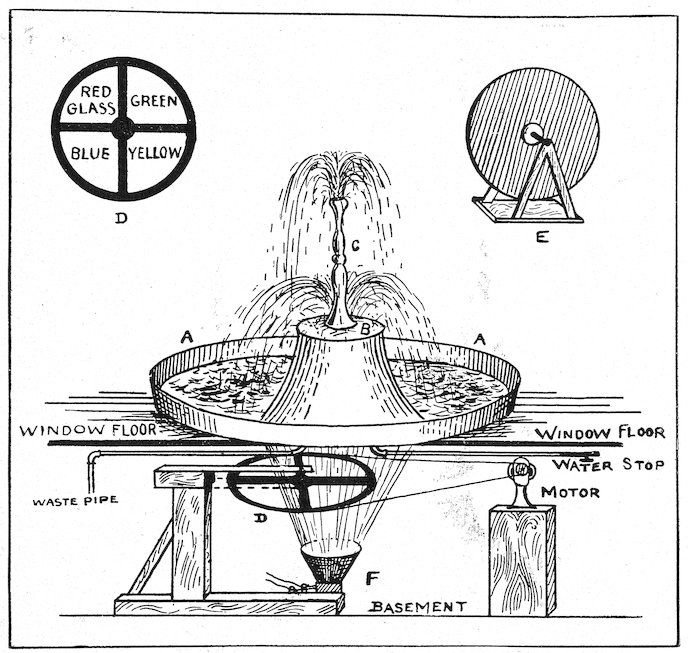 (1) An electric fan kept constantly in motion in a corner of the window is said to avoid frosting by keeping the atmosphere in circulation, and thus preventing condensation upon the surface of the glass. In a large window there should be two fans, in opposite corners, and these may be easily concealed from view.