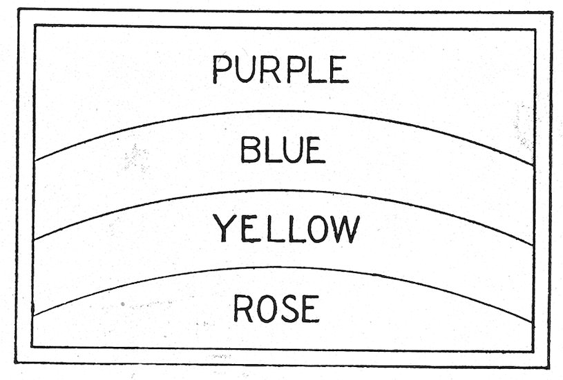 CORSET DISPLAY. SHOWING THREE CIRCLES OF GRADED SIZES SET BACK OF EACH OTHER AND PUFFED IN DIFFERENT TINTS.—Stritt.