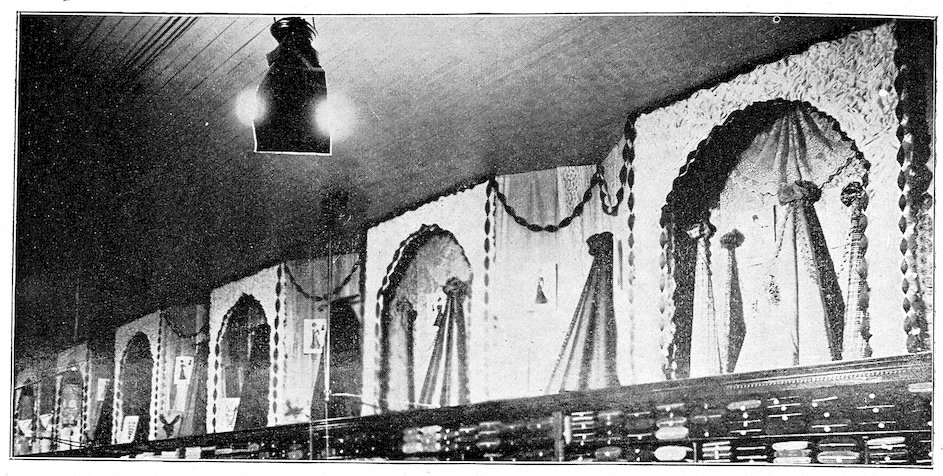 It is, however, often necessary to work during the day, and in this case a screen of muslin or cambric is stretched across the window to insure privacy. This screen is almost a necessity to the merchants in smaller cities, where all work is done in daytime, and may be utilized to good advantage in attracting the curiosity of passers-by.