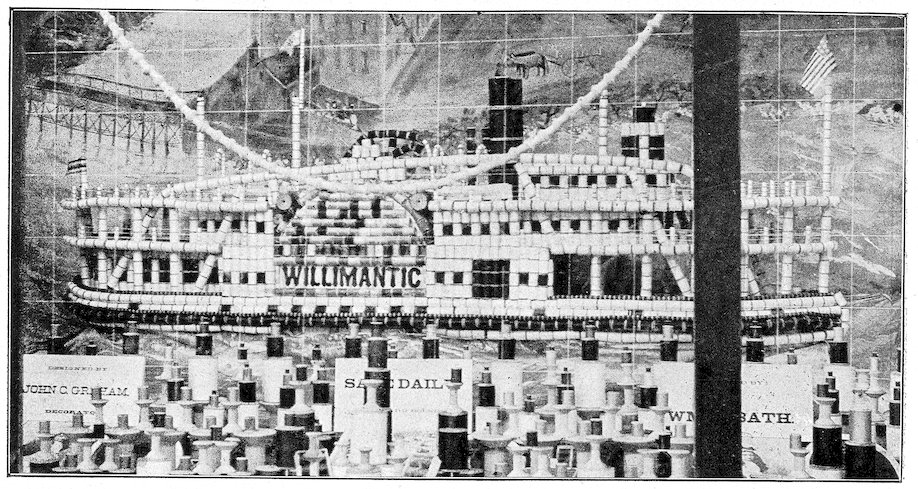 STEAMBOAT OF SPOOL COTTON. THE SPOOLS ARE STRUNG ON WIRES AND FASTENED TO A LIGHT FRAME OF WOOD.—Murray.