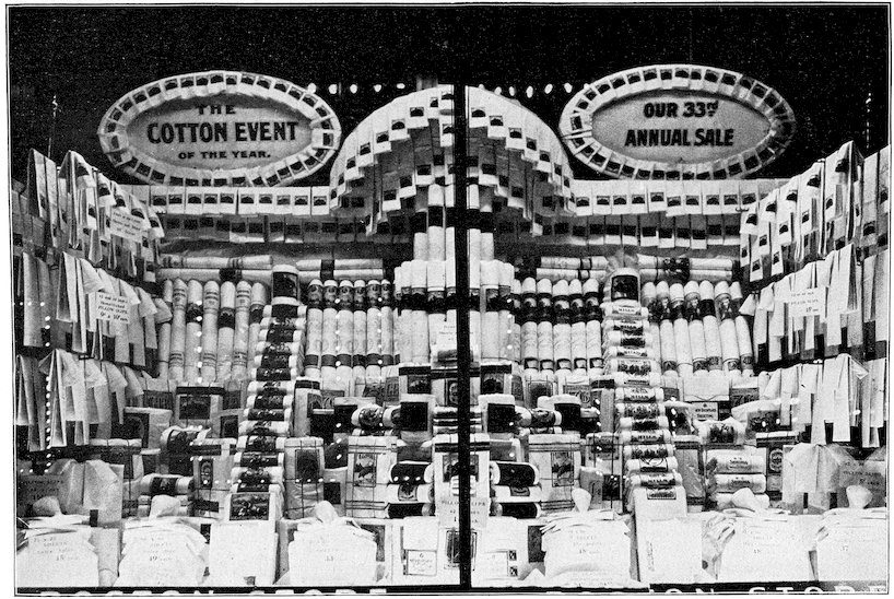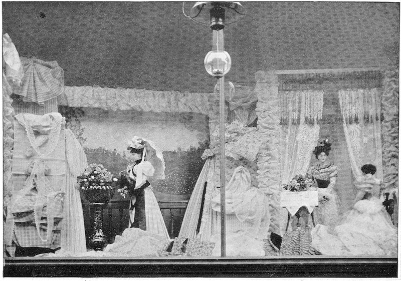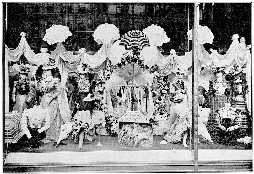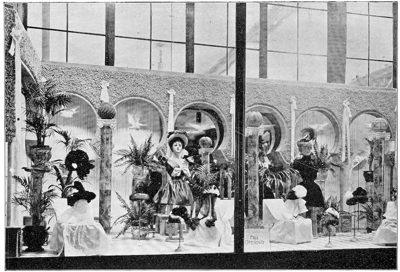 The mission of the show window is not to display unsaleable goods, but to sell goods. If you can’t make a pretty picture and sell goods at the same time let the picture go, but make a display that will sell the goods. But don’t forget that if you can make the window attractive enough to arrest the gaze of the passerby your goods are half sold. This may appear to you ambiguous at first, but a little thought will teach you never to lose sight of the fact that goods must be sold, and that an attractive window will help sell them. But a “picture window,” in which the value or utility of the goods is sacrificed to make the picture, is not art, but foolishness.