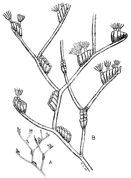 A. Pelmatozoa,[24] or Echinoderms provided with a stalk throughout 112life or in the larval stages only. To this group belong the Crinoidea, and the extinct Blastoidea, and Cystidea.