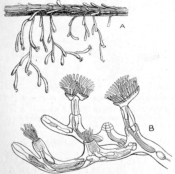 Plants are not free from the attacks of Nematodes, and examples are shown, accompanied by an illustrating figure, of the Ear-cockle gall of wheat; this gall is due to the injuries inflicted by a minute Thread-worm—Tylenchus tritici. Wheat is, of course, by no means the only cultivated plant that is attacked by these minute worms; the history of most has, however, still to be made out.