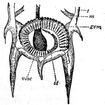 23. It should be mentioned that one high authority, Prof. W. K. Brooks, does not regard the life history of Salpa as an example of alternation of generations, but considers the solitary Salpa to be, not asexual, but a female which produces a chain of males; but it is impossible to enter into a difficult question of controversy here.