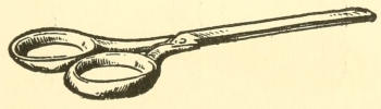 5. Fasten on an extra cardboard, putting either a silver paper “mirror” or a real looking-glass between it and the back. The fasteners should be pushed through from the back. Look carefully to see how the little prongs are bent and curved to form little hooks.