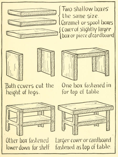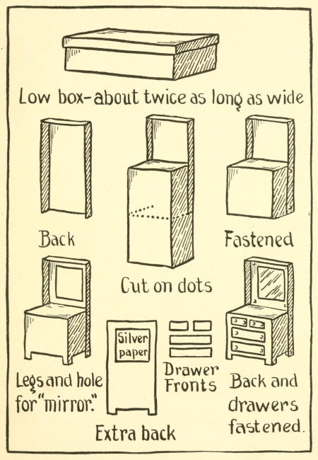 A book which shows children just how to make most attractive toy furniture out of materials which cost practically nothing--toys which give as much pleasure as those from expensive toy shops