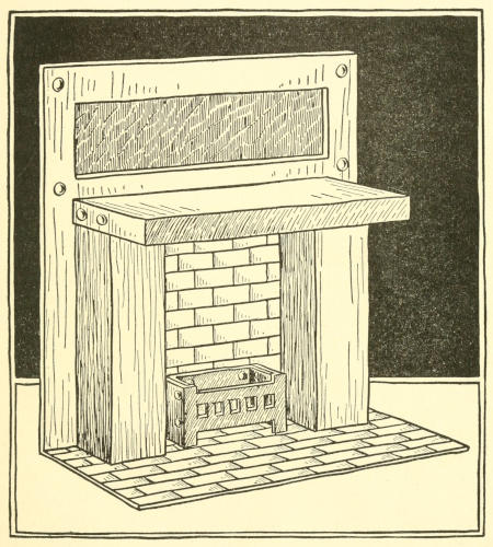 8. Paint grate with black enamel and the “woodwork” like your furniture, or with white enamel. Paint the hearth and fireplace like brick or tiles.