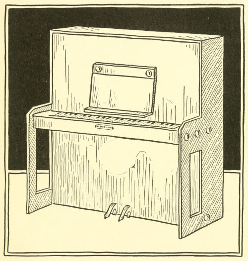 4. Carefully study the picture. Notice how the box is made to fit into the piano, by cutting down the edges of box until they are as deep as “A” in the picture. Fasten the parts together.