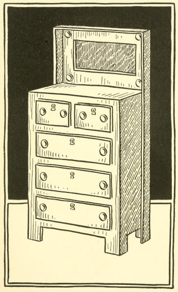 2. Slide the box up or down as in making the dresser. Make the part containing the “drawers” higher, and the “mirror” shorter than in the dresser.