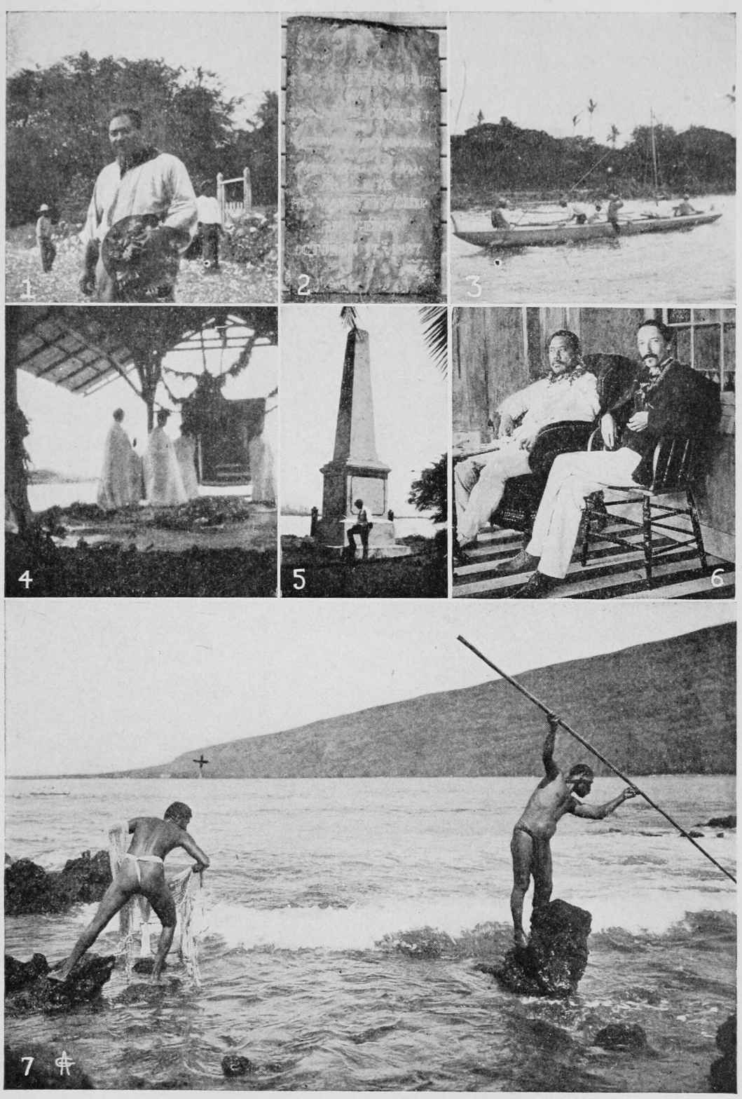 | (1) Prince Cupid. (2) Original “Monument.” (3) The Prince’s Canoe. (4) At Keauhou, Preparing the Feast. (5) Jack at Cook Monument. (6) King Kalakaua and Robert Louis Stevenson. (7) Kealakekua Bay—Captain Cook Monument at +. | 202 |