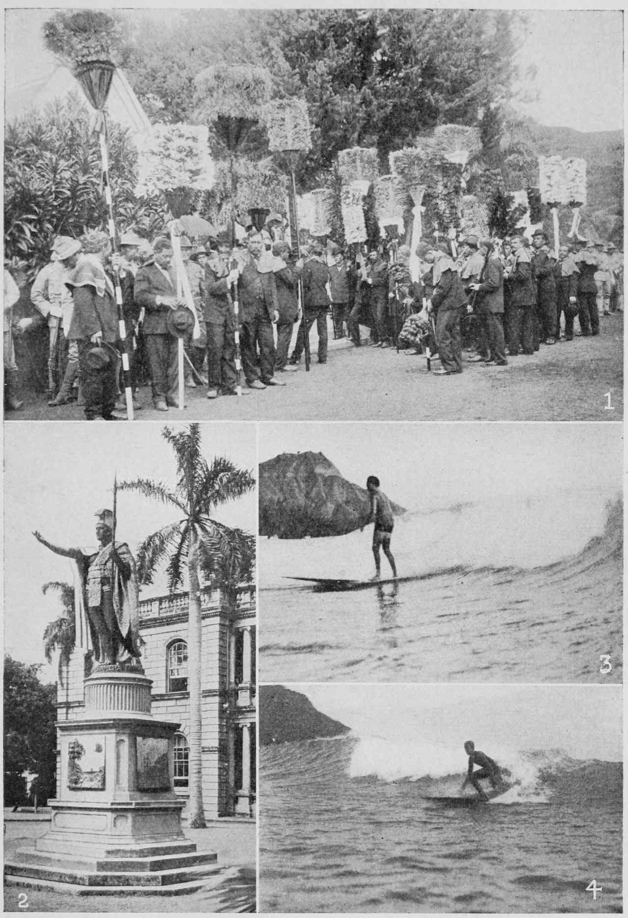 | (1) Kahilis at Funeral of Prince David Kawananakoa. (2) Kamehameha the Great. (3) and (4) Sports of Kings. | 294 |