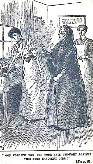 "Good morning, Margery," said her mistress kindly. "Miss Mabel tells me she misses a diamond ring, and as the rest of the household have been with us so long as to be quite above suspicion, her fear is that you may perhaps have been tempted into taking it."