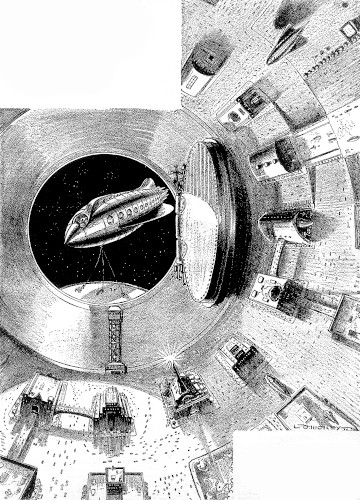 Begun in 2125, Trainor's Tower had been finished hardly a year. A slender white finger of aluminum and steel alloy, it rose twelve thousand feet above the canyons of the metropolis. Architects had laughed, six years ago, when Dr. Trainor, who had been an obscure western college professor, had returned from a vacation trip to the moon and announced his plans for a tower high enough to carry an astronomical observatory giving mountain conditions. A building five times as high as any in existence! It was folly, they said. And certain skeptics inquired how an impecunious professor would get funds to put it up. The world had been mildly astonished when the work began. It was astounded when it was known that the slender tower had safely reached its full height of nearly two and a half miles. A beautiful thing it was, in its slim strength—girder-work of glistening white metal near the ground, and but a slender white cylinder for the upper thousands of feet of its amazing height.