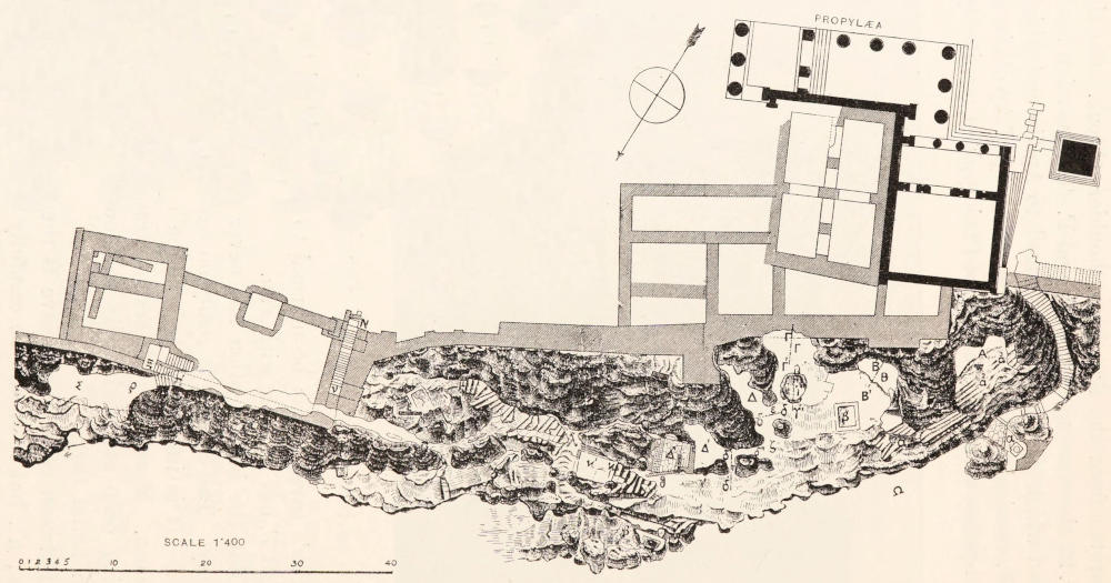 Thucydides, though certainly convicted of some inexactness as to detail, is in his main contention seen to be strictly true—‘what is now the citadel was the city.’ Grasping this firmly in our minds we may return to note his inexactness as to detail. By examining certain portions of the Pelasgic wall more closely, we shall realize how much smaller was the space it enclosed than the Acropolis as known to Thucydides.