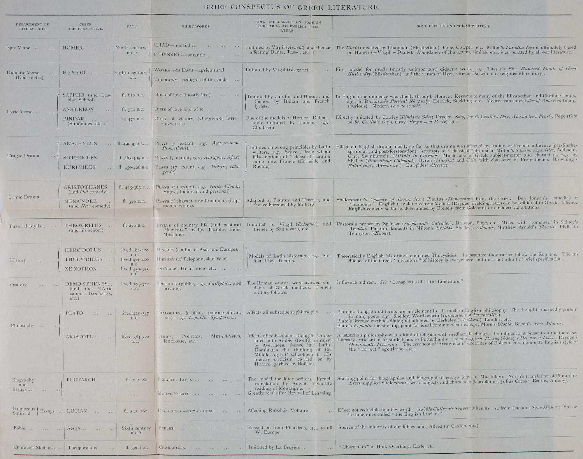 | 1. Table of Greek Literature. | ||