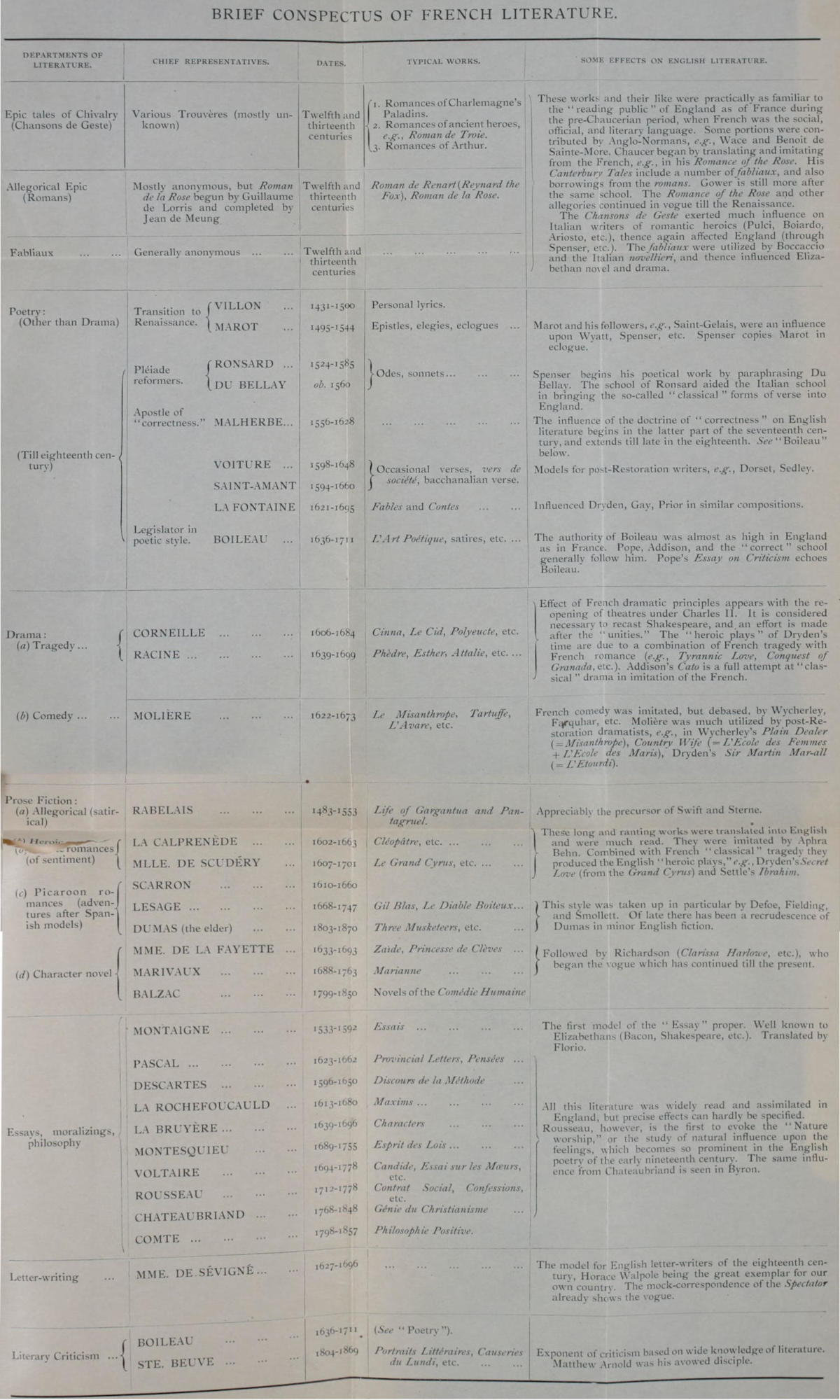 | 4. Table of French Literature. | ||