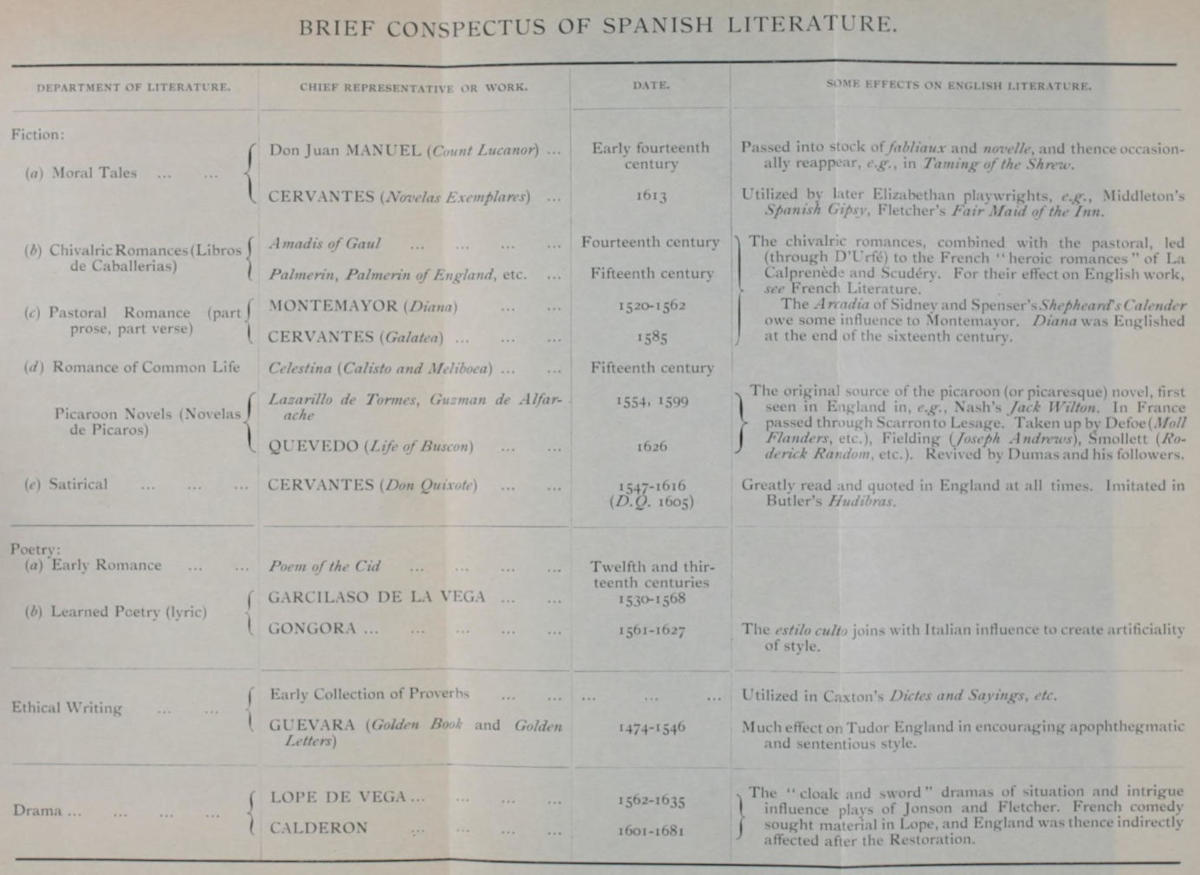 | 6. Table of Spanish Literature. | ||