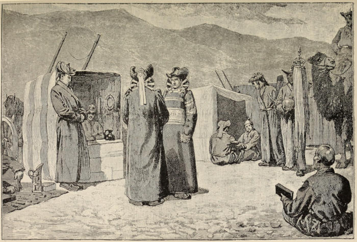 | The Russian consul, M. Feodroff—Hospitality of the Consulate—The “lions” of Ourga—The colossal statue of the “Maidha”—The “Bogdor of Kurene”—An impromptu interview—Prayer-wheels—Praying-boards—Religious fervour of the Mongols | 272 |