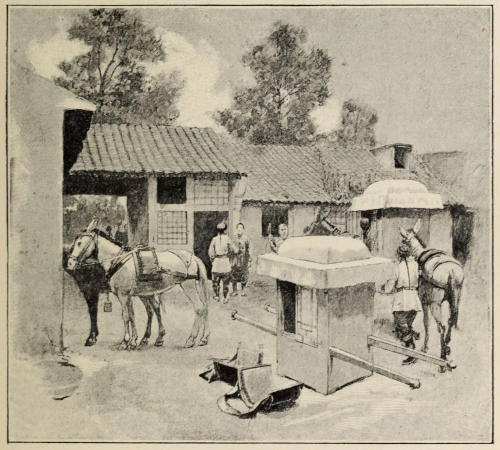 Although, beyond my credentials as correspondent of the Illustrated London News, I was unprovided with any letter of introduction, I was immediately received in a most friendly and informal manner by courteous Sir John Walsham, and we had quite a long chat together. Sir John seemed somewhat surprised at my having been permitted to come through China from Kalgan, and still more so when I informed him I had accompanied the Russian mail. The reason of his surprise I could only conjecture. One subject led to another, and I gradually learnt a lot of interesting particulars about the position of European Ministers in Peking. Although I was already somewhat au courant with the state of affairs, I must confess I was fairly astounded when I was informed that beyond being, as it were, tolerated, they never have any communication with Celestial officials except on business matters, and there was absolutely no friendship lost between them; that their position was always, as it were, on a volcano, and often almost insupportable. This remarkable status quo, Sir John added, would doubtless have to be rectified one day, for China is an important country from many points of view. For the moment,[356] however, Europe had her hands full. I could not help mentioning that I had already heard of all this, and that it was always a source of wonderment to me that the great Powers had so long stood this sort of arrogant insolence on the part of a semi-barbaric nation.