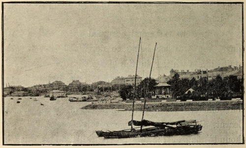 The trip to Shanghai occupied three and a half days, the weather being so delightful that it was quite like yachting in the Channel. The Hsin-Yu was a fine steamer of some 1500 tons, belonging to the China Merchants Company, manned by Chinese, but officered entirely by Europeans. She had, I learnt, the proud privilege of flying the “Greyhound” flag of the East. We called in at Chefoo, and remained there long enough to have a hasty look round this quaint little semi-English village. Then on again to Shanghai, where I arrived on June 26, 1891.