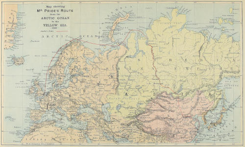 Well, to cut a long story short, after a lot of correspondence had passed between us, the “Anglo-Siberian Trading Syndicate” agreed to take me, subject to certain restrictions as to publication of sketches and matter relating to the expedition, and to land me eventually, if all went well, at the city of Yeniseisk, in the heart of Siberia. On my taking a map of the route down to the office, and asking Mr. Ingram where I was to go if I ever found myself there, “You can go wherever you like, so long as you send us plenty of interesting sketches for the paper,” was his generous reply. With liberty, therefore, to roam all over the world, so to speak, and with unlimited time and plenty of means at my disposal, I started on a journey, the narrative of which I now venture to put in print, in the hope that at any rate some parts of it may give a few fresh facts about the vast continent I traversed from north to south.