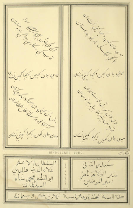 “Sri” is written at the top of all Hindi writings; the meaning of the word is “prosperity;” it is put as a title of respect before proper names; frequently they write the same word twice over (“Sri, Sri,”)—or they write “Sri Gănésh.” The Muhammadans, in a similar manner, dedicate their writings to God by a character on the first page, which, as in short-hand writing, implies a whole sentence.