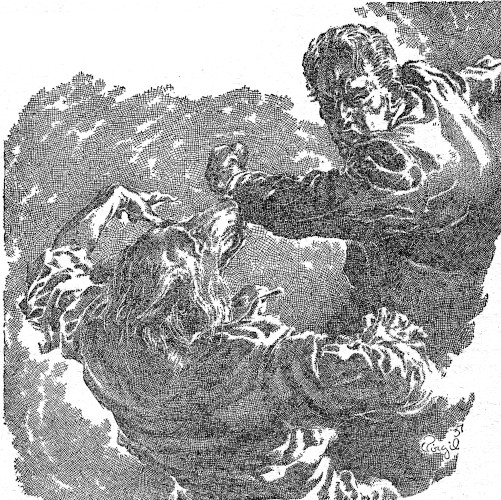 Claws ripped at my head, missed and tore the cloth of my coat. One of my arms shot around a lean, hairy middle with powerful muscles straining under its skin, and I drove my other fist for where I judged the pit of the stomach to be. Grappled, we fell and rolled over. The beast smell I remembered was all about us, and I knew that jaws were shoving once again at my throat. I jammed my forearm between them, so far into the hinge of them that they could not close nor crush. My other hand clutched the skin of the throat, a great loose fistful, drew it taut and began to twist with all my strength. I heard a half-broken yelp of strangled pain, felt a slackening of the body that struggled against me, knew that it was trying to get away. But I managed to roll on top, straddling the thing.