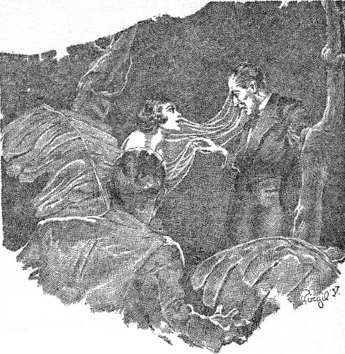 I saw only this much, without stopping to judge or to wonder. Then I yelled, and sprang into the clearing. At my outcry the two fell apart and faced me. The smallest was Susan, who took a step in my direction and gave a little smothered whimper, as though she was trying to speak through a blanket. I ran to her side, and with a rough sweep of my sleeve I cleared from her face and head a mass of slimy, shiny jelly.