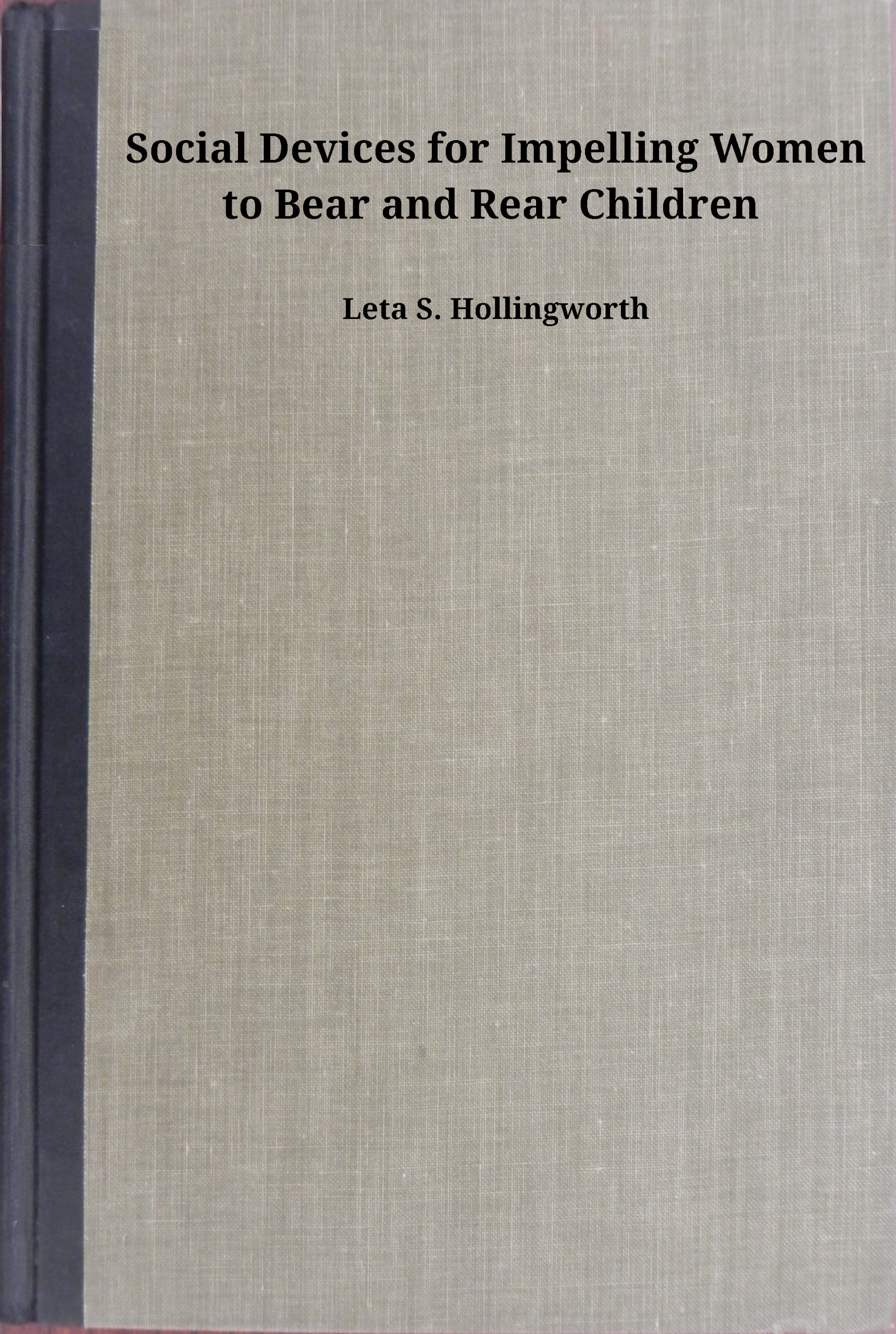 The pains, the dangers, and risks of child-bearing are tabooed as subjects of conversation. The drudgery, the monotonous labor, and other disagreeable features of child-rearing are minimized by “the social guardians.” On the other hand, the joys and compensations of motherhood are magnified and presented to consciousness on every hand. Thus the tendency is to create an illusion whereby motherhood will appear to consist of compensations only, and thus come to be desired by those for whom the illusion is intended.