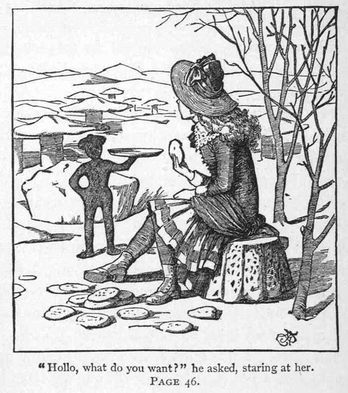 With a wave of his candle all three miracles were wrought,--for the snow- flakes turned to a white fur cloak and hood on Effie's head and shoulders, a bowl of hot soup came sailing to her lips, and vanished when she had eagerly drunk the last drop; and suddenly the dismal field changed to a new world so full of wonders that all her troubles were forgotten in a minute.