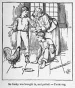 Quick as a flash, off went the cover of the old boiler, and out came half-a-dozen of Johnny's best works, to be crammed through the wall, with the earnest request,—