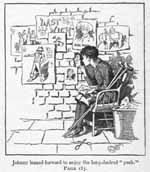 The old cobbler next door enjoyed reading the anecdotes on Sunday when he could not work; the pale seamstress upstairs liked to look over advertisements of the fine things which she longed for; and Patsey Flynn, the newsboy, who went by each day to sell his papers at the station, often paused to look at the play-bills,—for he adored the theatre, and entertained Johnny with descriptions of the splendors there to be beheld, till he felt as if he had really been, and had known all the famous actors, from Humpty Dumpty to the great Salvini.