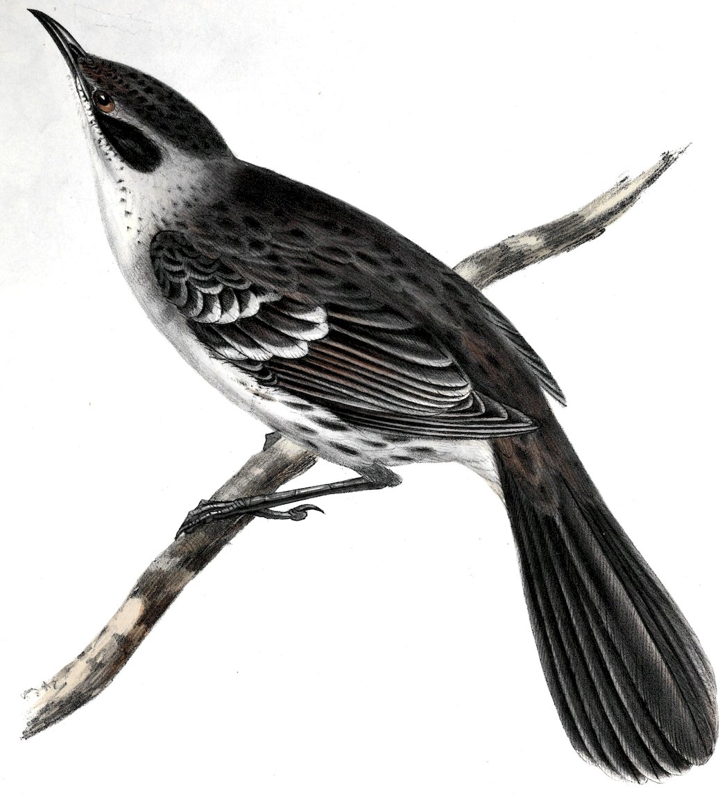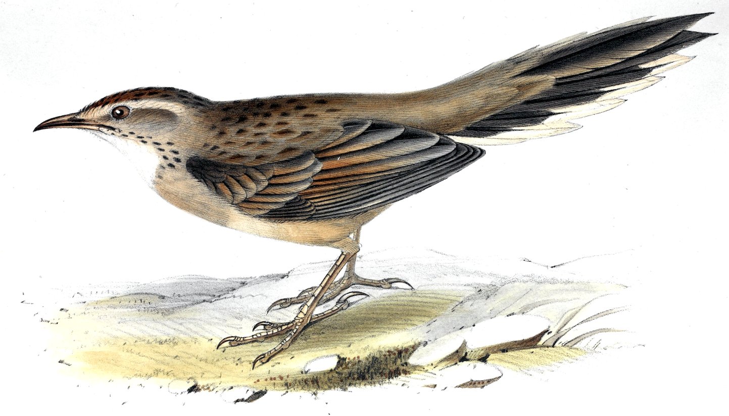 In the valleys north of 30° in Chile, I saw several pair, either of this species, or of the P. montanus of D’Orbigny, (if, as is probable, they are different) or of some third kind. From the circumstance of its not extending (as I believe) so far south even as the valley of Coquimbo, it is extremely improbable that it should be the M. albogularis,—an inhabitant of a plain country twenty degrees further south. On the other hand, the P. montanus lives at a great elevation on the mountains of Upper Peru; and therefore it is probable that it might be found in a higher latitude, but at a less elevation. M. D’Orbigny says, “Elle aime les terrains secs et dépourvus de grands végétaux, qui lui seraient inutiles; car il nous est prouvé qu’elle ne se perche pas sur les branches.” In another part he adds, “Elle descend cependant quelquefois jusque près de la mer, sur la côte du Pérou, mais ce n’est que pour peu de temps, et peut-être afin d’y chercher momentanément une nourriture qui lui manque dans son séjour habituel; peut-être aussi la nature du sol l’y attire-t-elle; car elle y trouve les terrains arides qui lui sont propres.”[9] This is so entirely the character of the northern parts of Chile, that, it appears to me extremely probable, that the P. montanus, which inhabits the great mountains of Bolivia, descends, in Northern Chile, to near the shores of the Pacific; but that further 21south, and on the opposite side of the Cordillera, it is replaced by an allied species,—the M. albogularis of Santa Cruz.
