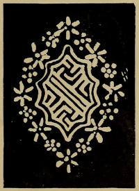 In former times they wove their own cloth, but now the cloth used is largely muslin woven in England or Japan. Several qualities are used for different grades of work. Practically all Batik work is done on muslin, though occasionally a silk scarf may be colored in this way. The cloth is prepared before using, first, by thorough washing to remove all starch and filling; second, by soaking it in cocoanut oil, and third, removing the oil with ashes. This removes the dead-white look and gives the creamy color with which we are familiar in Batik pieces. Next, the cloth is starched with a rice starch made by boiling rice in water until it is a thin paste. The cloth is then dried and rolled up. In a primitive fashion, it is then softened or ironed by pounding with a wooden pestle until it is smooth. The cloth is now ready. The wax used is a mixture of rosin, animal fat and beeswax. The proportion of each has been worked out by long experience. A little iron pan or stone jar holds the melted wax. The tjanting, which is the characteristic tool of Batik work, is used to apply the wax. This is a little oval cup made of very thin copper with a slender curved spout projecting from the base of the cup. For a handle, a short piece of reed with a soft pith is used. Tjantings vary in the size and number of spouts. A tjanting with a fine slender spout is used for very narrow lines and small dots. Then comes a series of others, each with a little larger spout for the purpose of covering more surface. One kind is made with two spouts and is used to draw parallel lines. Others have from three to six spouts to give the little groups of dots which are quite an essential part of some designs. (See page 13.)