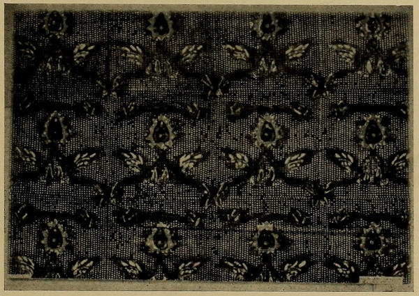 In Java, in the earlier days, Batik was largely a home industry, but like all such it is being taken out of the home and transferred to primitive factories, where the workers come together to work, but continue the old methods and technique. Even in that far-off land, machine imitations of Batik are flooding the country, and it is difficult today to be sure that a given piece is a genuine example of the hand process, unless the individual history of the piece is known, since the old designs are still used, and the native work is imitated in the printed cloths even to the crackle and irregularity of the designs.