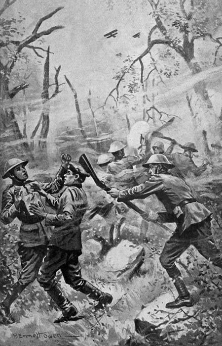 | He made a long leap forward, bringing the gun-butt down directly on the head of the German (page 98) | Frontispiece |