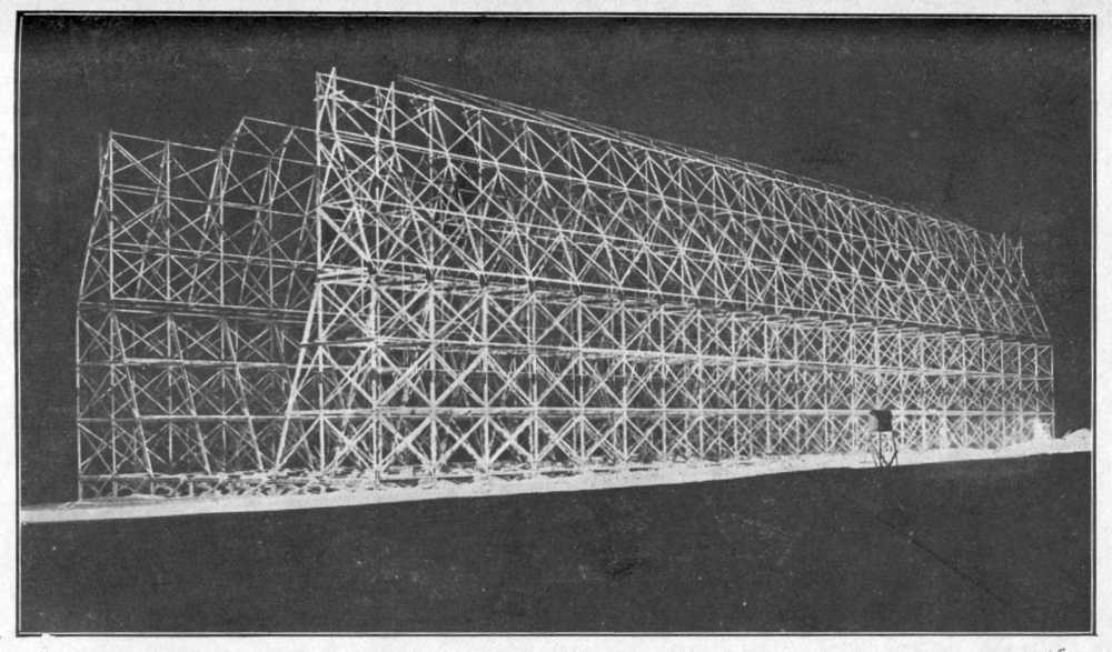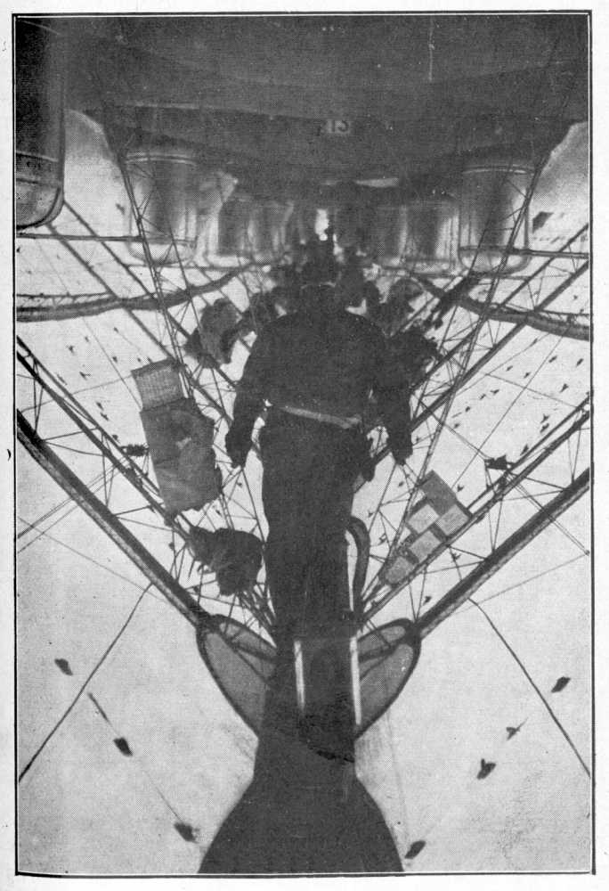 [4] Le mât consiste en un pylône auquel le ballon vient s’amarrer. Cette méthode de « mouillage » des dirigeables, a donné d’excellents résultats. Un aéronef a pu demeurer quarante-deux jours amarré à un mât, sans aucun inconvénient, même par des coups de vent. Ajoutons que dans ces conditions, le ravitaillement du ballon s’opère aisément.