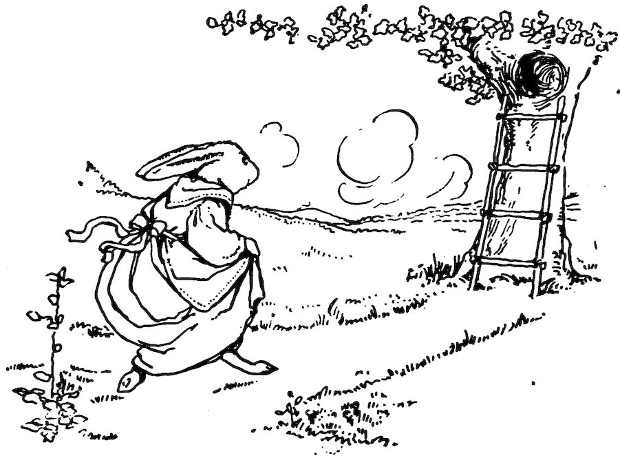 “Very well,” said patient Mrs. Bunnikins-Bunny, “it is already so late that we might as well have our luncheon here. By the time you come back, we shall be ready.”