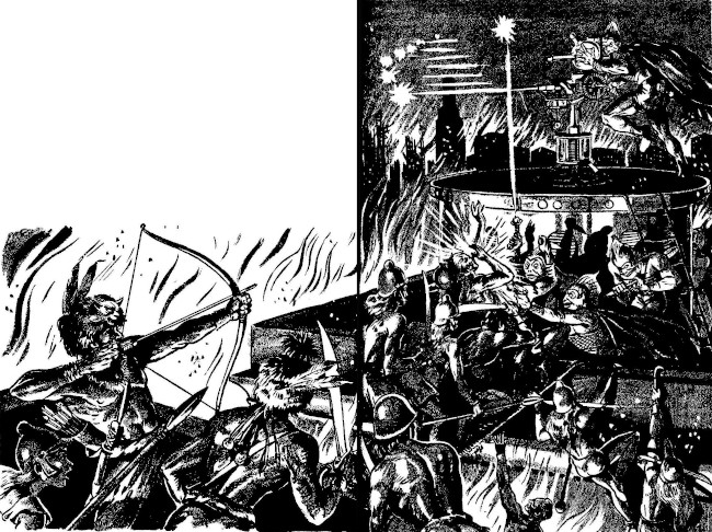 Steve turned. Within the past few minutes, unheard in the confusion which had reigned here, a hundred thunderous blasts must have scorched the heavens over Daan. For now, roaring high above the city, circled the mighty armada of the Overlords.