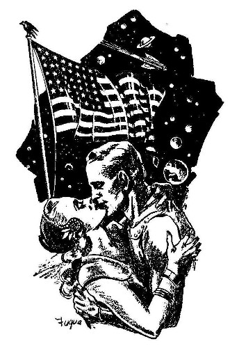 He kissed her. "We've won, sweetheart, the flag shall fly over Earth again!"