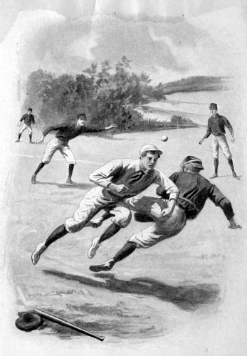 Harry looked into the field. The fielder was just preparing to throw the ball up to the second baseman. Away he started for the home plate, with the whole crowd yelling like a lot of demons. Boardman was at the plate waiting for the ball, and now he stepped to his left—directly in the runner's path.