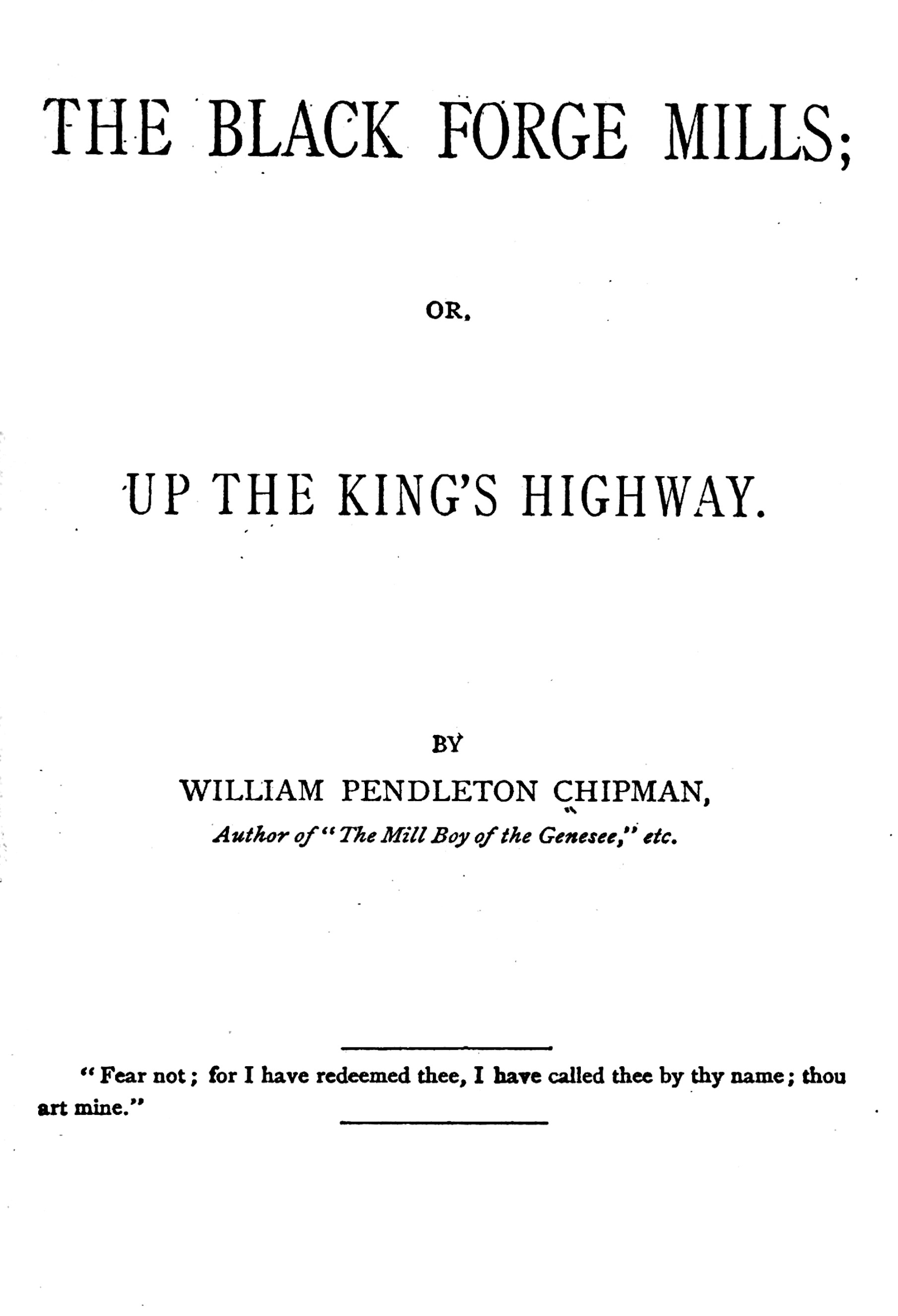 Below him there was a small valley, separated from the main portion of the town by a sharp declivity. Through this a considerable stream went foaming and dashing to the bay no great distance off. Along the banks of the stream five large buildings with their massive chimneys were built; and clustered about them were a half hundred or more tenement houses, exactly alike in size and hue. Mr. Carleton had no need to read the huge white letters on the roofs of the factories to know that they were the Black Forge Woolen Mills.