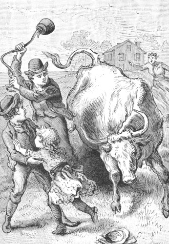 He had not gone a dozen rods when a stone thrown from some neighboring corner struck his hat, and sent it spinning to the ground, eight or ten feet away.