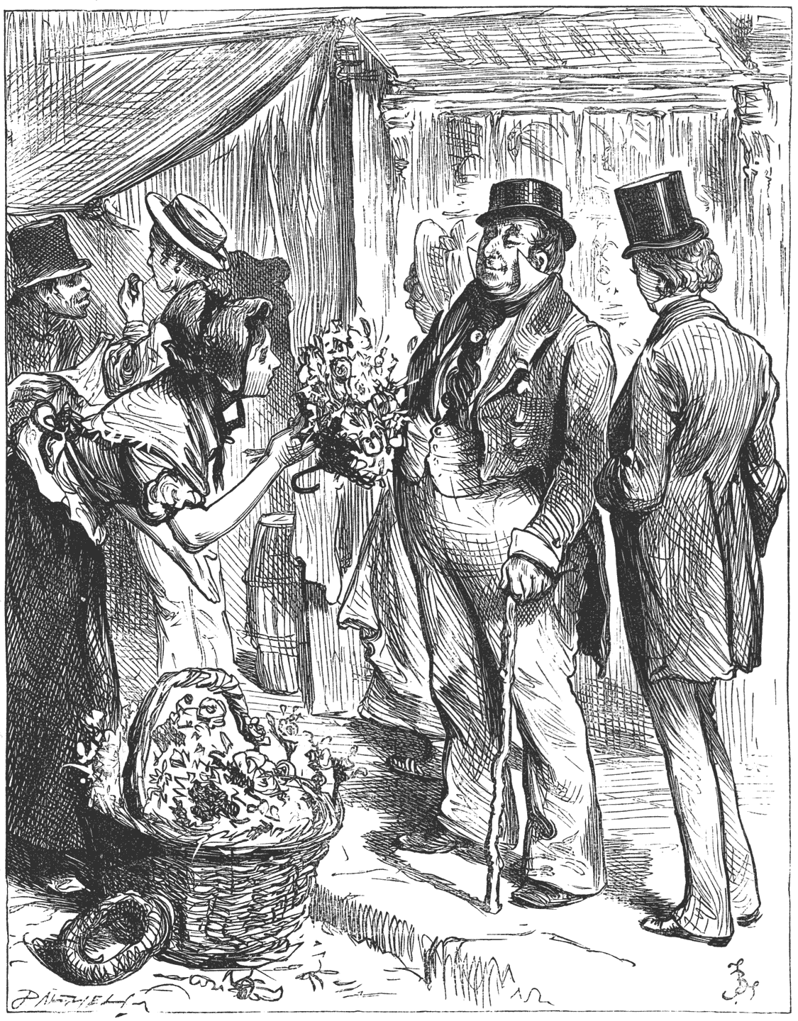 Dombey’s beker van vreugde was op dit oogenblik zoo vol, dat hij gevoelde wel een paar droppeltjes te kunnen missen, zelfs om in het stof van het zijpaadje zijner jeugdige dochter te sprenkelen.