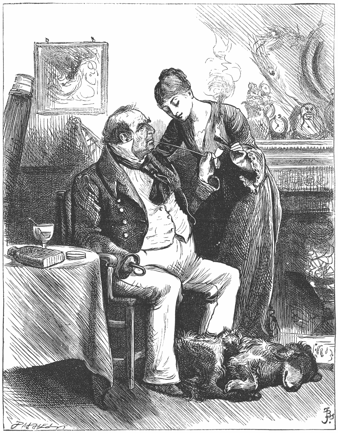 “Zonder het meisje is zij onrustig,” fluisterde de dokter Dombey toe. “Wij vonden het best, haar maar weder te laten binnenkomen.”