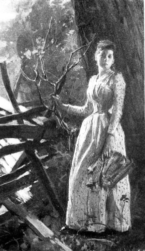 A young woman of twenty, perhaps, with a pale oval face and dark hair, and serene dark gray eyes, was on the rickety porch, leaning upon a rude shelf that served also as a balustrade; she had a cedar piggin in her hand, and the cow was lowing at the bars. On the doorstep there sat a rotund and stalwart, but preternaturally solemn young person, who now and again, with a corrugated countenance, gnashed his gums. His time and energies were expended in that trying occupation known as "cuttin' yer teeth," an acquisition which he would some day value more highly than now. He sought, as far as an abnormally developed craft might compass, to force, by many an infant wile, his elders to share his woes, and it was with a distinctly fallen countenance that his father hearkened to his mother's parenthetical request to "'bide hyar an' company leetle Moses whilst I be a-milkin' the cow."