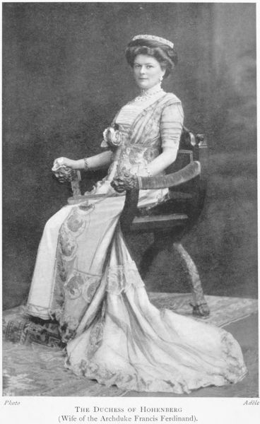 [7] Apparently healthy, though there is, unhappily, a strain of insanity in the Chotek family also. Nothing was known or suspected of it at the time of the marriage; but the Duchess of Hohenberg’s father had to be placed under restraint before his death. One may hope that the weakness was developed too late in life to be transmitted.
